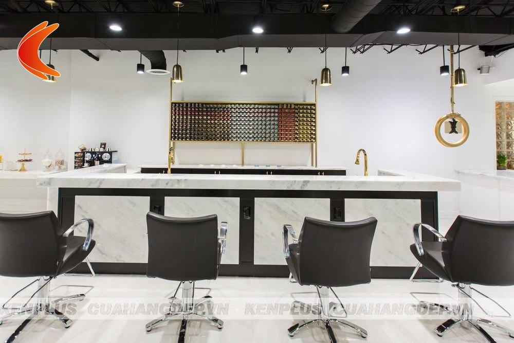 >> Mẫu thiết kế salon tóc nam nữ kết hợp nail phong cách tối giản