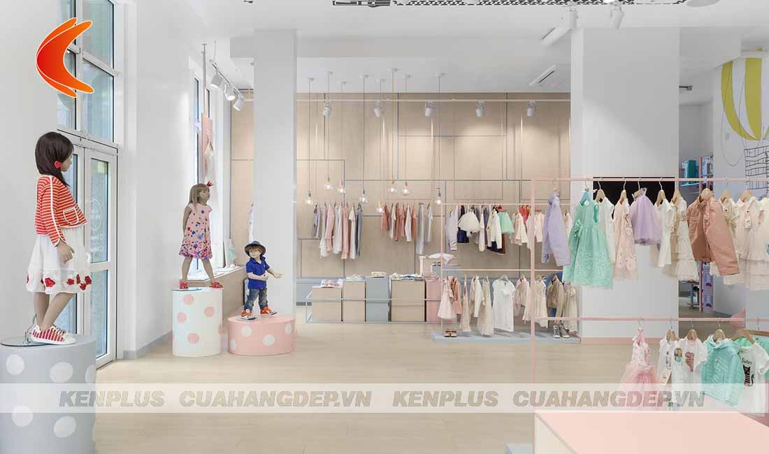Bên cạnh đó, chủ đầu tư cũng nên bố trí những kệ quần áo, giá hàng vừa tầm để các bé có thể thoải mái nhìn ngắm, lựa chọn và thử đồ. Tất cả các chi tiết trong thiết kế cửa hàng thời trang mẹ và bé đều có ý nghĩa riêng, giúp không gian kinh doanh trở nên thu hút.
