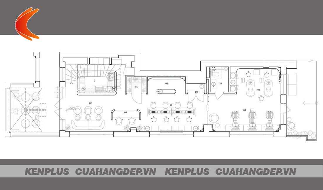 Mặt bằng công năng mẫu thiết kế salon tóc nam nữ kết hợp nail