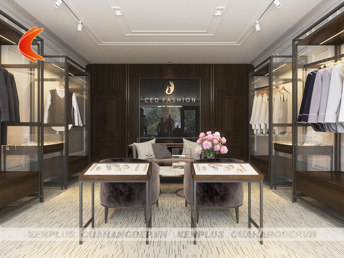 Với mong muốn giữ chân được khách hàng ở lại trong CEO FASHION. Kiến trúc sư KenPlus đã trao đổi với chủ đầu tư công ty CEO Việt Nam về quyết định sẽ thiết kế nội thất shop thời trang theo lối hiện đại, lịch lãm. Chủ yếu sử dụng những màu trắng, nâu đậm làm màu chủ đạo.